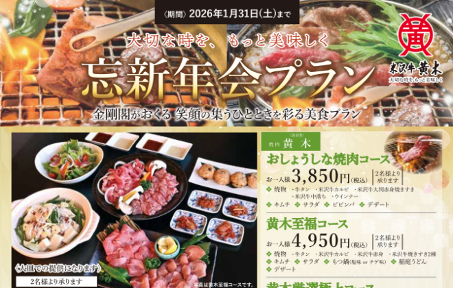 ✨忘新年会は是非金剛閣で✨2025-2026予約受付開始☺