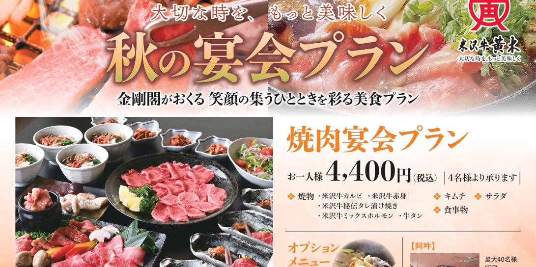 ●焼肉宴会プラン お一人様4,400円 ※4名様より承ります
