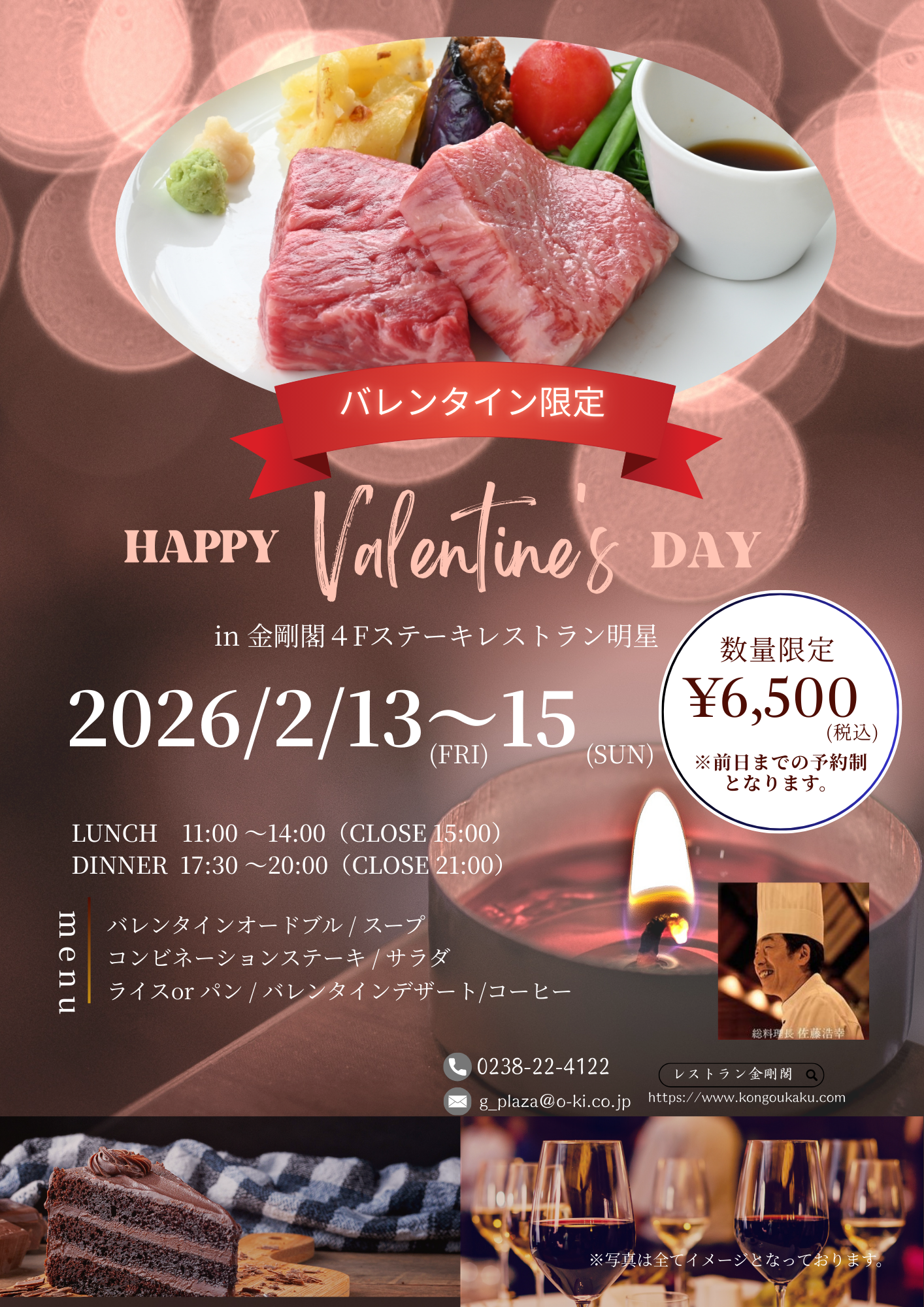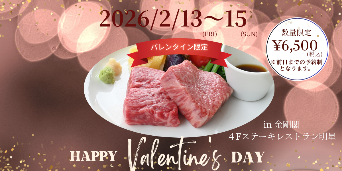 【🍰2/13-15バレンタイン限定コース🍫】in 4Fステーキレストラン明星