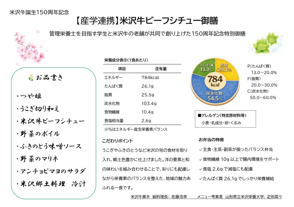 ✨【栄養大×黄木コラボ】米沢牛誕生150周年記念「米沢牛ビーフシチュー御膳」新発売✨